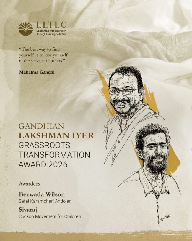 மேலும், இவ்வமைப்பின் மூலம் இனி ஆண்டுதோறும் இரு மனிதர்களுக்கு ‘லட்சுமண ஐயர்’ பெயரில் விருது வழங்கப்படும். விருதளிப்புத் தொகையாக தலா ரூபாய் இரண்டு லட்சம் முடிவு செய்யப்பட்டுள்ளது. சமூகம் சார்ந்த செயல்பாடுகளை மதிக்கும் பொருட்டும், சமகாலத் தலைமுறையினருக்கு அம்மனிதர்களை அறிமுகப்படுத்தும் பொருட்டும் இவ்விருது அளிக்கப்படவுள்ளது. இதன்படி, 2026ம் ஆண்டுக்கான ‘லட்சுமண ஐயர்’ விருது இருவருக்கு அளிக்கப்படுகிறது. முதல் மனிதர் கர்நாடக மாநிலத்தைச் சார்ந்த பெஜவாடா வில்சன், இரண்டாவது மனிதர் தமிழகத்தைச் சார்ந்த குக்கூ சிவராஜ்.